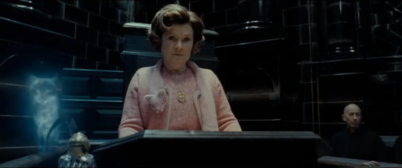 Umbridge at Harry Potter's Disciplinary as a member of the Wizengamot