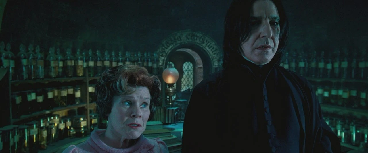 The only Slytherin who did not support Dolores Umbridge during her tenure at Hogwarts was the Head of Slytherin House himself, Severus Snape. Like Harry, Snape hated Umbridge from the moment he set eyes on her for taking the post of Defence against the Dark Arts teacher. Like his colleagues, he did as little to help her as possible due to seeing her as the spoiled child she was. Because of this, Snape was the only one who could ignore Umbridge's insults and endure her tantrums. He was however not above subtle taunting as shown when he merely raised an eyebrow after she told him he was on probation or when he pointed out the foolishness in her use of the entire bottle of Veritaserum (which was fake) he gave her when she only needed three drops.