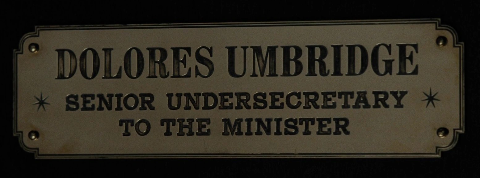 In 1995 by order of the Ministry, she was installed as Defence Against the Dark ArtsProfessor at Hogwarts School of Witchcraft and Wizardry, and then later Hogwarts High Inquisitor and Headmistress of Hogwarts School of Witchcraft and Wizardry, after Professor Albus Dumbledore had been fired. In all three of these positions at Hogwarts she had enormous power over the students, teachers, and the curriculum, which she wielded despotically.[6] Her time at Hogwarts was characterised by cruelty and abusive punishments against students, and because of her interfering and condescending ways, she was generally hated by most students and teachers alike.[6]