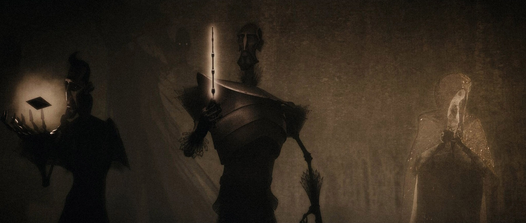 Movie version of Peverell Brothers holding the Deathly Hallows. |