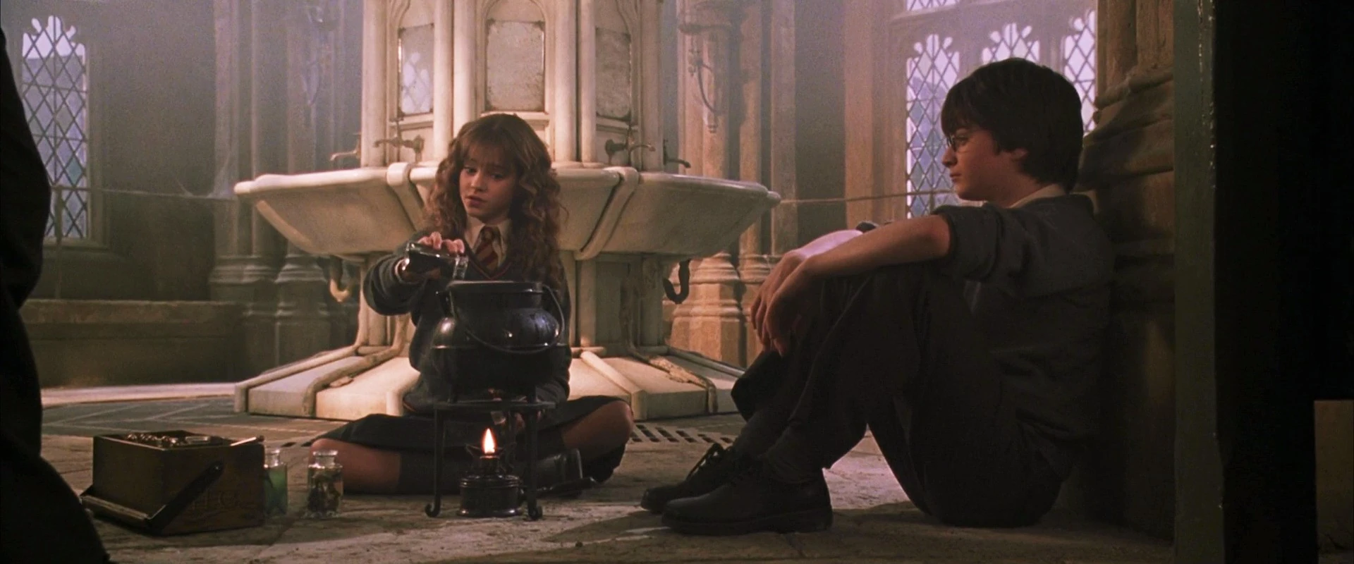Hermione Granger brews Polyjuice Potion in the second-floor girls' lavatory