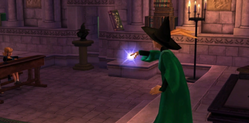 Minerva McGonagall casting a wandless Avifors Spell